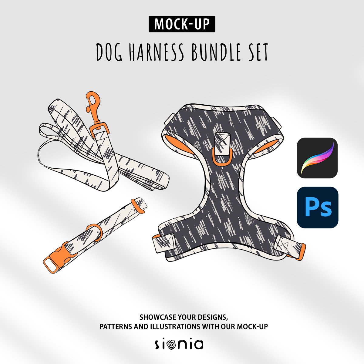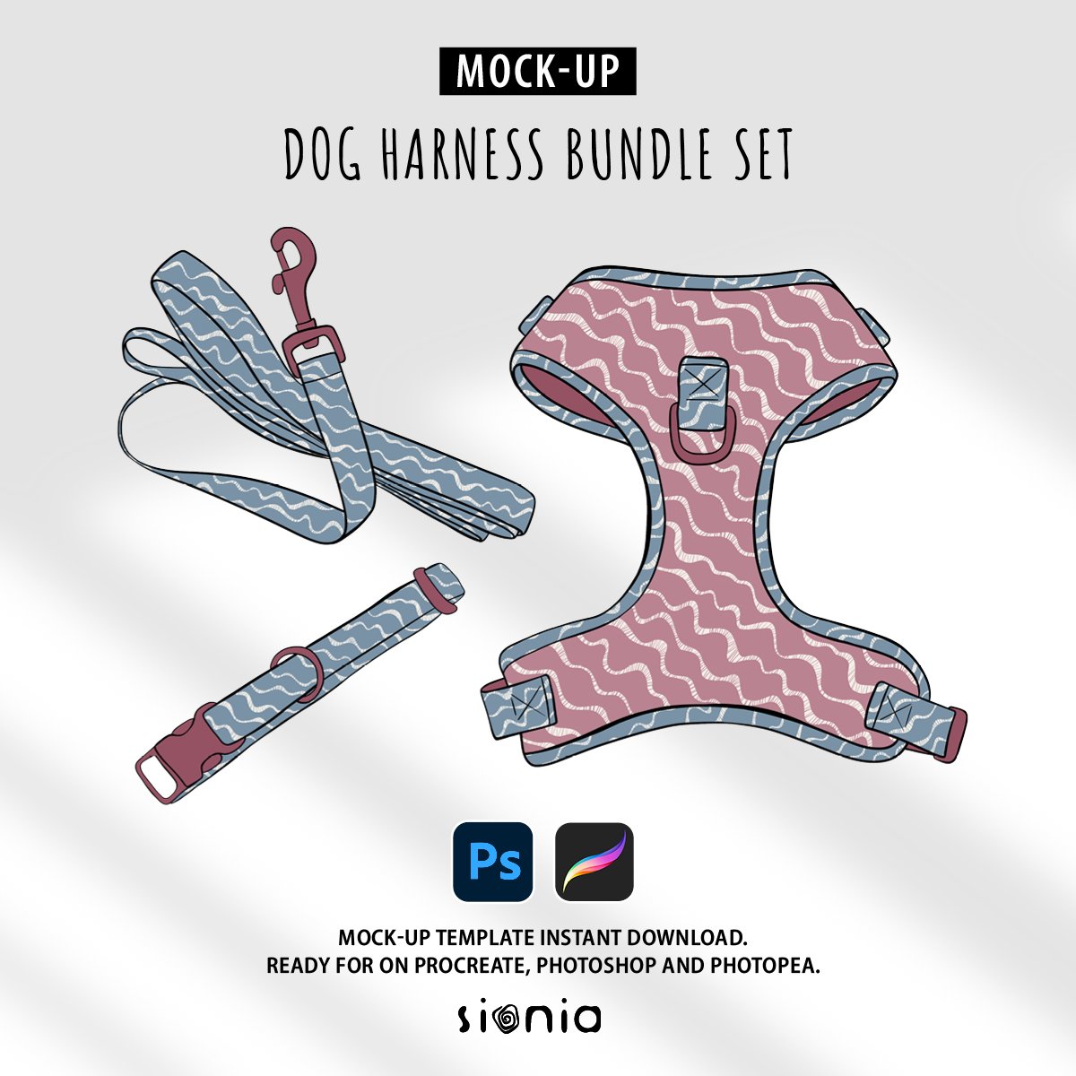 Dog Harness Bundle Set mockup template! This mock-up is accessible on Procreate and Photoshop.